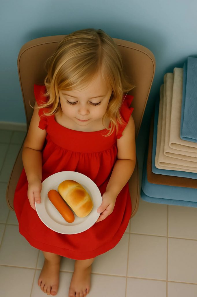 Elle a alors pris une chaise pliante, a emmené ma fille dans la buanderie et l’a installée là, près de la machine à laver qui tournait. Devant elle : une assiette avec une saucisse et un morceau de pain sec.